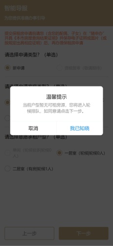 ②无房轮候:若当前户型暂无可租房源,可填写轮候申请表单,提交轮候申请,当前不支持本市拥有产权住房或承租公有住房申请人参与轮候。