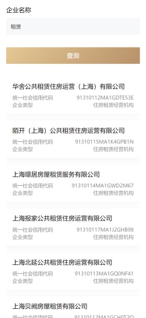 住房租赁企业是从事代理经租或长租公寓经营的公司,房地产经纪机构则是做房屋租赁或买卖的中介,选择企业类别,输入企业名称,点击【查询】,可以查看公司的信息。