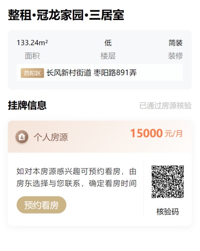 如果想要看看其他渠道房源的真实性,也可以在这里输入核验码编号查看房屋核验信息,很快也会支持扫码验真了哦!