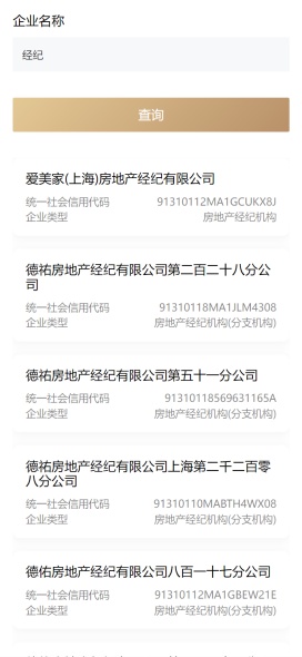 住房租赁企业/房地产经纪机构查询