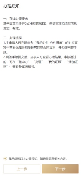 租房成交后,可以在线办理住房租赁网签备案,阅读在线办理须知后按照页面流程进行办理。注意需要由房东发起,房东和租客都要签名确认。