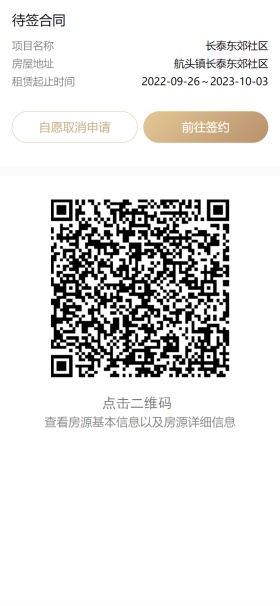 进入待签合同页面,点击二维码,查看、确认房源基本信息、详细信息,选择“前往签约”。