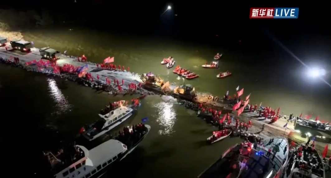 ◎湖南华容县团洲垸洞庭湖大堤决口完成封堵