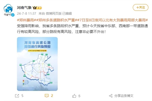 目前,河南郑州、开封迎来强降雨过程,部分城市道路出现积水,涉水较深,受此影响,郑州、开封公交公司启动应急预案,部分积水线路公交线路临时停运。据河南省气象服务中心官方微博消息,预计河南省中东部、西南部一带道路通行有较高风险,部分路段有高风险,注意非必要不外出!【阅读详情】
