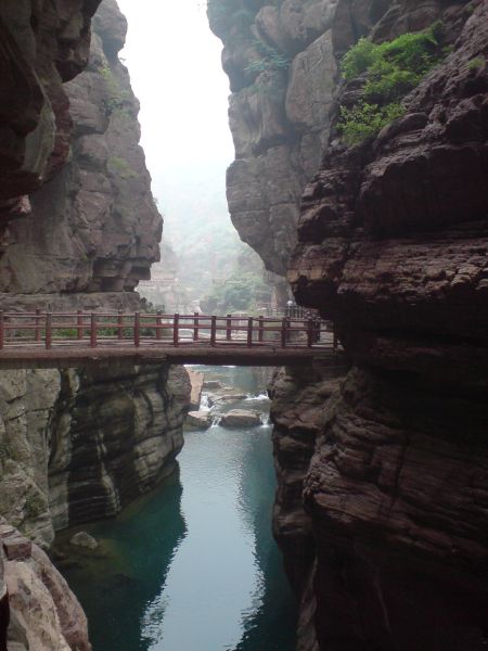 红石峡是云台山最有名的景点,不游红石峡,云台山也就白来了。这片石英砂岩峡谷因为富含氧化铁因而呈现出诡异的锈红色,加上子房河水对它千百万年的侵蚀,终于形成了“集秀、幽、雄、险于一身,泉、瀑、溪、潭于一谷”的奇景。