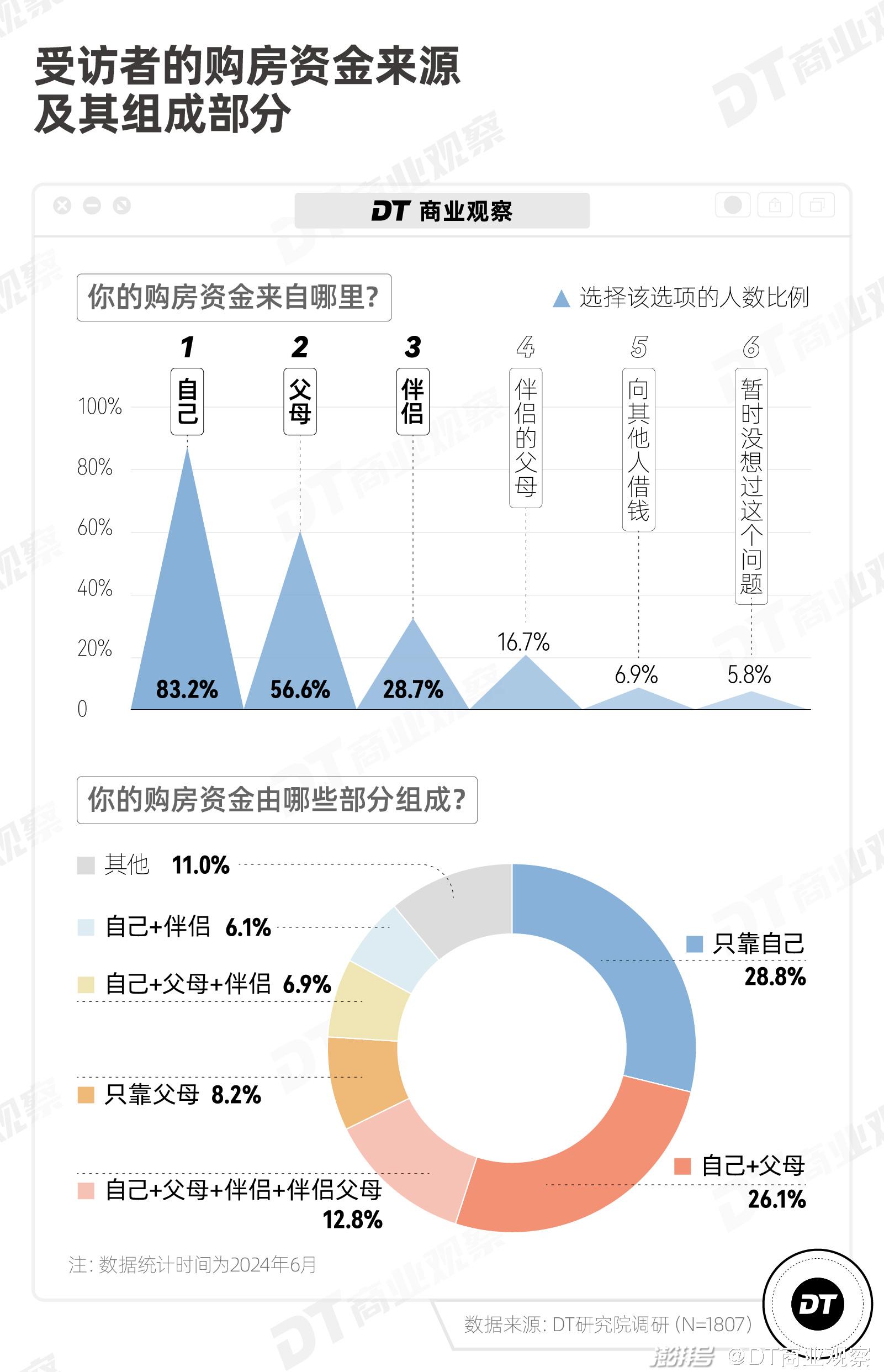 《DT商业观察》调研数据显示,不到3成人选择与伴侣一起买房,只有6.1%的人表示将与伴侣两人独立承担房款。