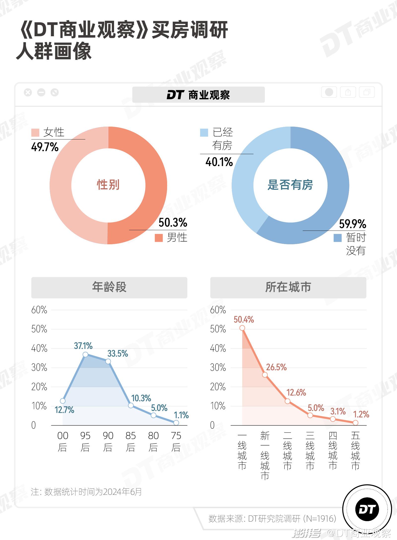 前段时间,《DT商业观察》发起了一次关于购房的调研,累计回收有效样本1916个。参与调研的人群中,95后、90后占比超7成,一线及新一线城市人群超7成,男女比例接近1:1,因此,此次调研可以看作是对大城市年轻人购房态度的一个摸底。