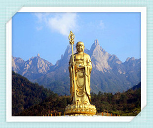 九华山古称陵阳山、九子山,为“中国佛教四大名山”之一,位于安徽省池州市青阳县境内,主要有九十九峰,最高的十王峰海拔1342米。为地藏王菩萨道场。
