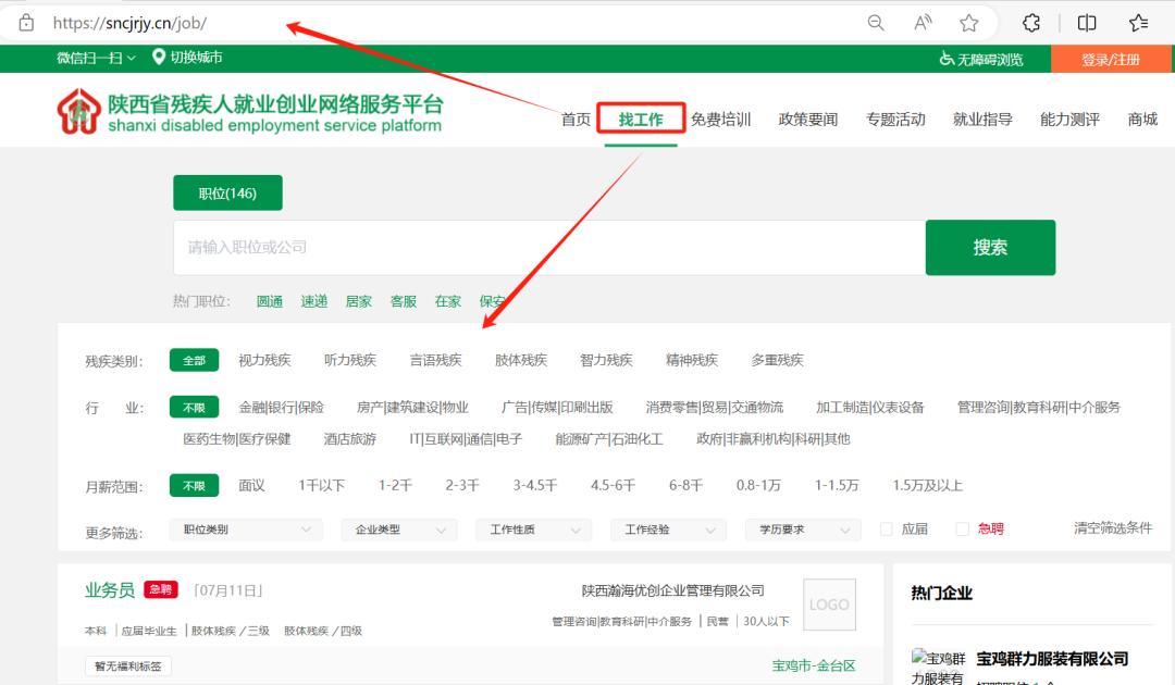 登录陕西残疾人就业创业网络服务平台(https://sncjrjy.cn/job/)选择【找工作】输入心仪的岗位或企业名称即可投递简历。