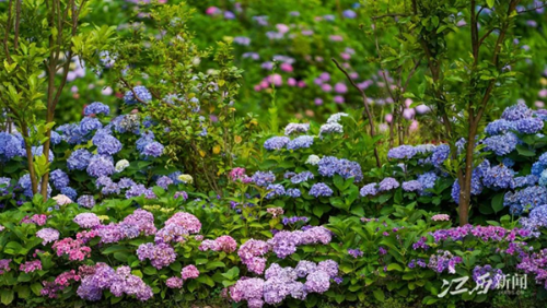 花溪谷是湾里管理局着力打造的特色鲜花产业园,总占地面积1200亩,集花卉种植、科普教育、旅游观光等功能于一体。春季有郁金香,夏季有绣球花,秋季有红枫,冬季有腊梅。其中,绣球花谷占地面积300余亩,以淡蓝色的无尽夏品种的绣球花为主,进入盛放期有100余亩,另有玫瑰花、波斯菊等十余个品种。