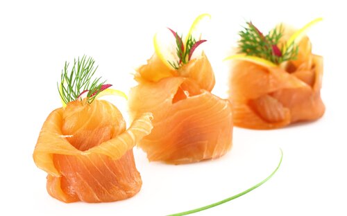 烟熏三文鱼的口味比较特别,也是一种腌制品,不同的是,腌制食品用的盐量多,而且腌制的时间更长,一般需要20天左右,而烟熏三文鱼腌制时用盐较少,腌制时间一般为半个小时到几个小时之间。烟熏的过程中烟里的水珠吸附于食材表面,富含各种风味的化合物慢慢将味道渗透到食物内部,低温熏烤,更浓的鱼香,更少的营养流失,能够捕捉更多木中原味,风味更浓郁。据Mai Goo网小编了解,烟熏三文鱼是爱斯基摩人创作出来的美食,后来流传到了北欧和北美,人们发现被熏制过的三文鱼,气味独特,肉质紧实,口感更好,于是就流行到了整个西...方社会,成为了西餐特色菜之一。 【 详细>>】