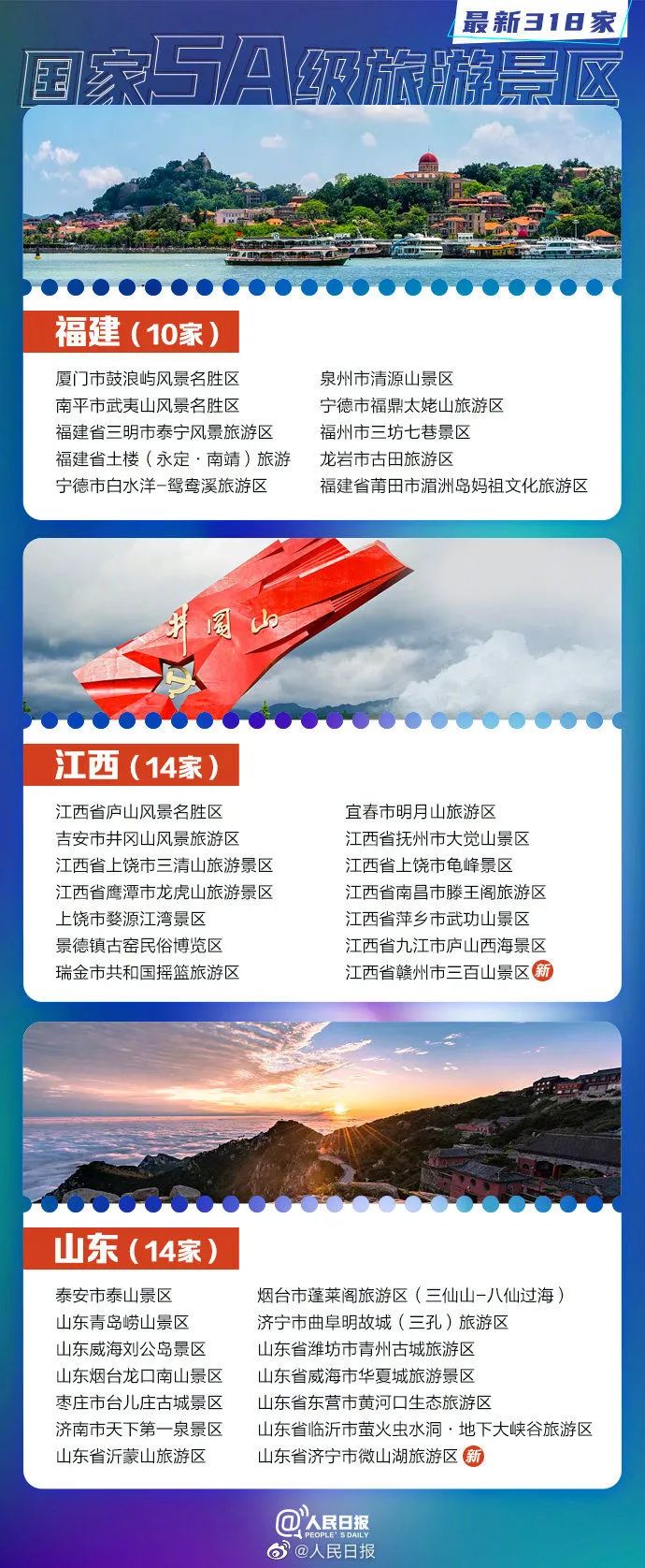 目前,全国共有318家5A景区