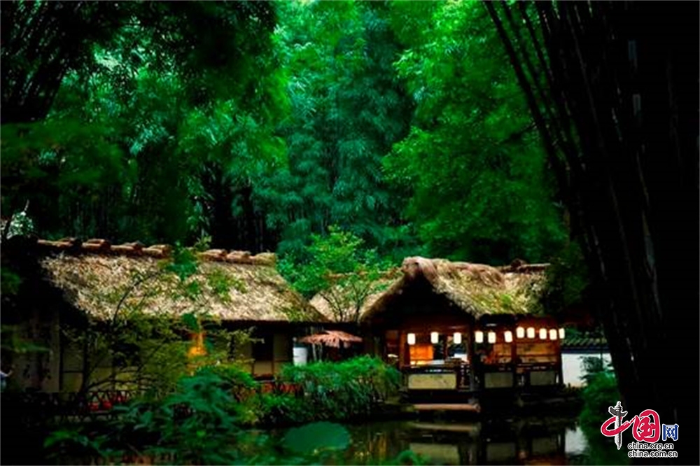 草堂占地面积近300亩,建筑古朴典雅、园林清幽秀丽,是中国文学史上的一块圣地。