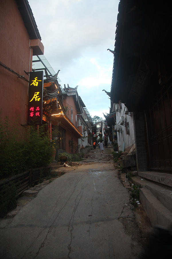 譬如,遍布鹅卵石的茶马古道残垣,由于不适应游客的“拉杆箱”,改变成为“水泥路面”;静坐于门前的年老的纳西妇女已经被游客取代;高高挂起的灯笼和客栈招牌,预示客栈的形式;紧贴在墙上的空调外机,显示这里的房间已经具有舒适的“现代化”设施。而唯一保留下来来的文化符号就是“顾彼得旧居”。