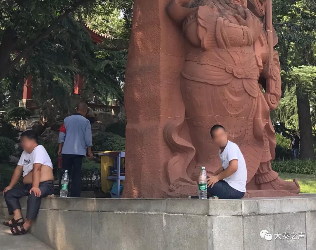在大雁塔北广场的草坪处,记者看到一位游客脱了鞋子、坐在树荫下的草坪上玩手机乘凉,景区的长椅就在距离她几步之遥的前方。附近的保洁员称,游客各种随意放松的形象和姿态非常不雅。有的游客三五成群坐在草坪上打扑克、吃瓜子,他们离开后草坪上的瓜子皮都得靠保洁员用手一一捡出来。这位保洁员无奈地告诉记者:“都说现在的人有钱了,素质高了。看到这些践踏草坪、光脚玩水、随意拖鞋、爬高上低与雕塑合照的不文明行为,哪儿有素质啊?”
