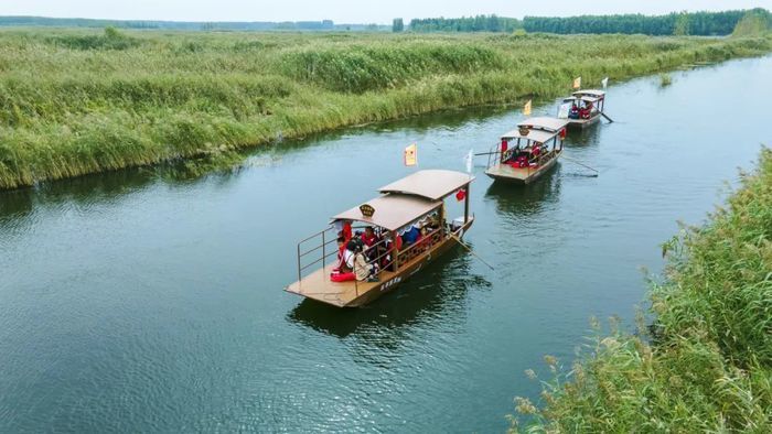 淄博市桓台县马踏湖国家湿地公园现有湿地核心区10.22平方公里,湖区沟汊纵横,河道交织,形成了我国北方独具特色的“村村靠湖、家家连水、户户通船”的水乡风貌,素有“北国江南”之美称。桓台县认真践行“绿水青山就是金山银山”发展理念,历经十余年,对马踏湖进行环境综合治理和生态修复涵养,逐步再现草长莺飞、碧水连天的历史风貌。荣获国家湿地公园、全国农业旅游示范点、国家水利风景区、省级风景名胜区、省级地质公园、省级美丽幸福示范河湖等众多荣誉称号;获评2021年度全国首批“美丽河湖”优秀案例第一名;央视新闻联播、央视新闻《走进县城看发展》、新华社特别直播节目《生态中国》、山东新闻联播等都对马踏湖进行过详细报道。