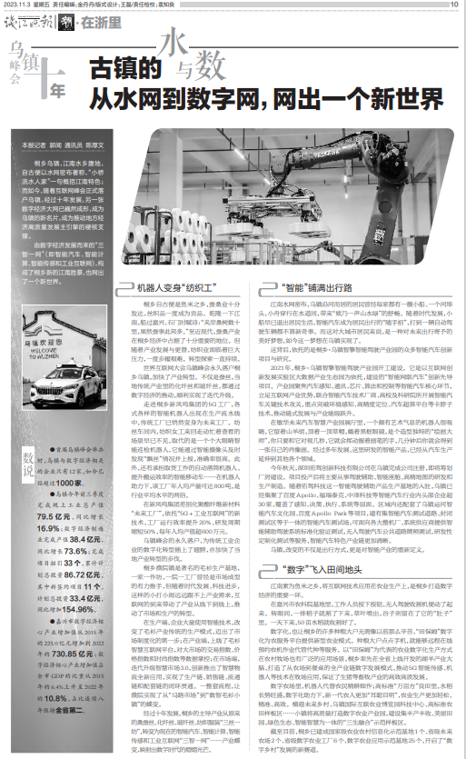 由数字经济发展而来的“三智一网”(即智能汽车、智能计算、智能传感和工业互联网),构成了桐乡新的江南胜景,也网出了一个新世界。