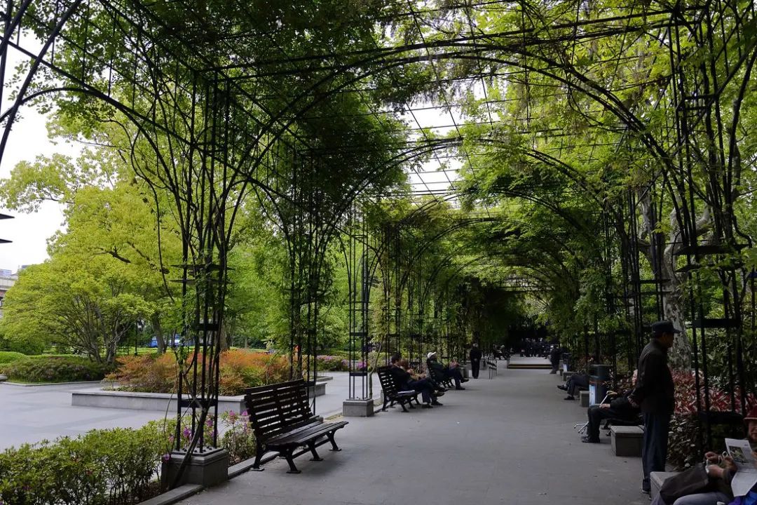 复兴公园是上海唯一一座保留法国古典式风格的园林,也是近代上海中西园林文化交融的杰作。这里的花坛采用下沉式,时下爱称沉床园,利用地面高差使人们的视点抬高,能更好地俯视花坛整体的效果,为公园的一大特点。