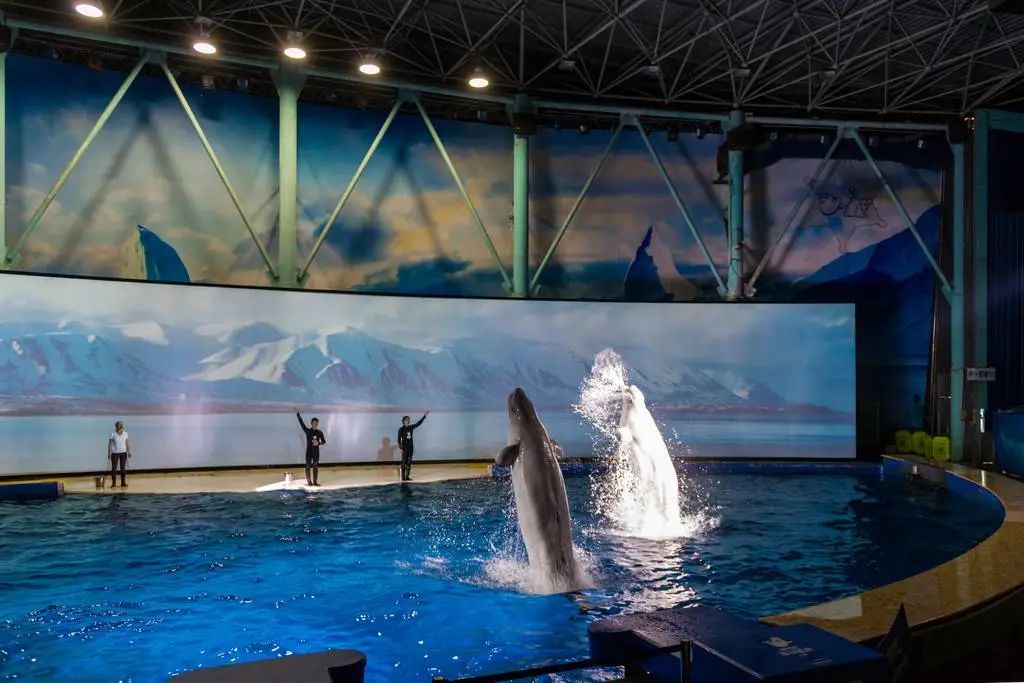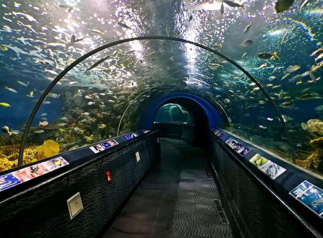 上海海洋水族馆一座具国际一流水准的现代化大型海洋水族馆。分中国、南美洲(亚马逊)、澳大利亚、非洲、东南亚、冷水、极地、海岸、深海九大展区,展出了来自五大洲、四大洋的450多个品种、12000多条珍稀鱼类及濒临绝种的稀有生物。水族馆中还有长155米、也是世界上最长的海底隧道之一,让游客有身临其境之感。