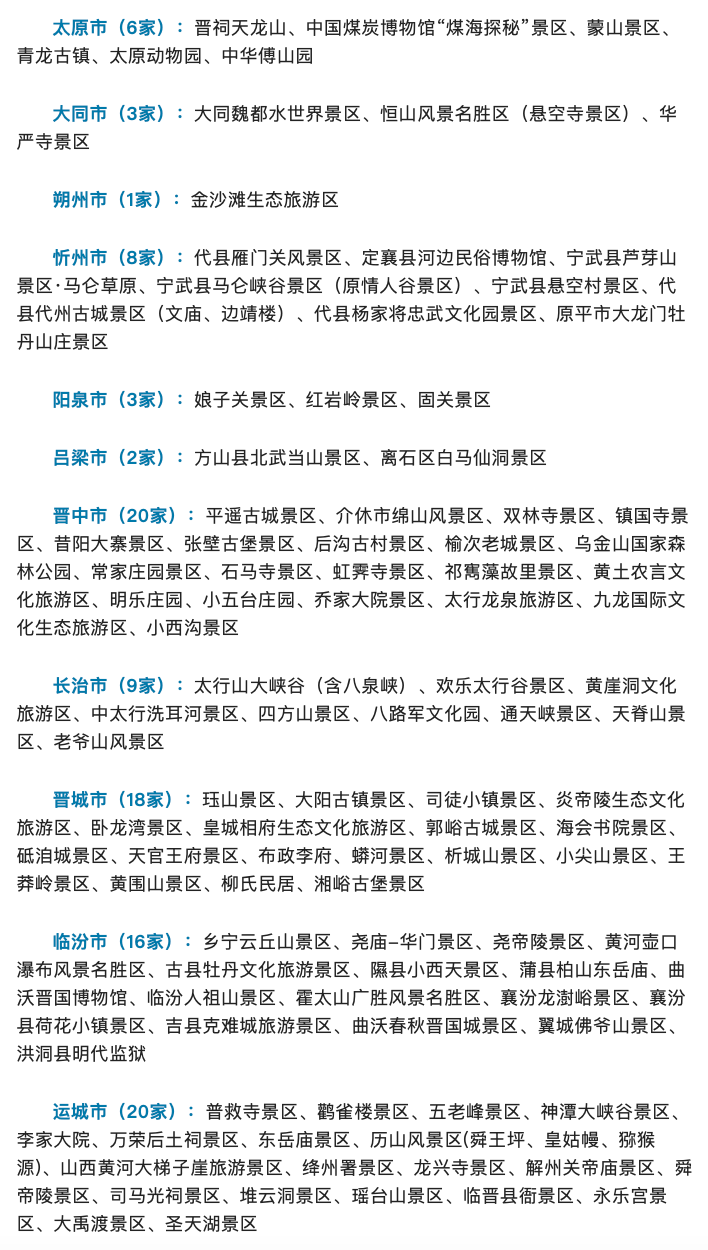 近日,山西省文旅厅公布了2023年全省首道门票优惠活动景区名单,共计有景区106家,其中参与活动的5A级景区7家,4A级景区66家,首道门票优惠至1折至8折不等,此项活动旨在加快复工复产和服务业复苏。