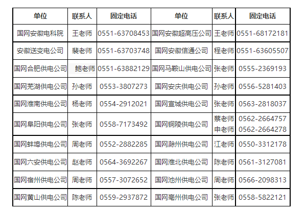通信地址:安徽省合肥市黄山路9号国网安徽省电力有限公司人力资源部(邮政编码230022);