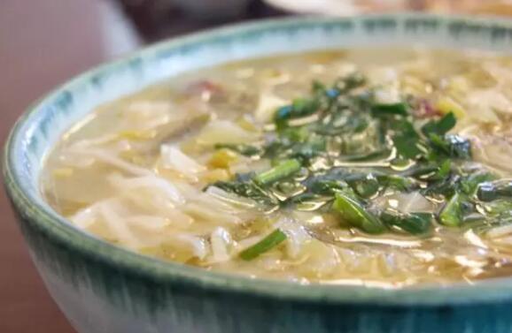 “敦煌八大怪”之三。浆水为芹菜或箭杆白菜、莲花菜投入面汤,加上浆水酵子,盛入缸内放在温暖处发酵三天而得。