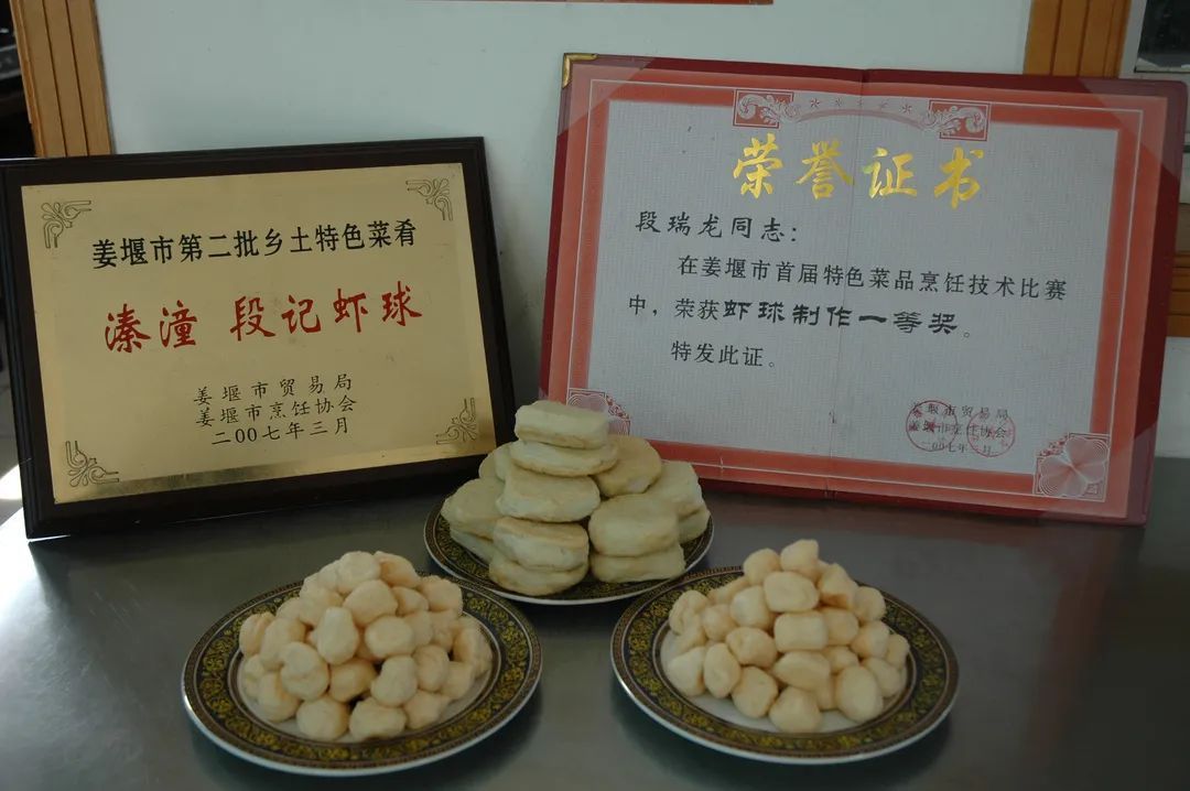 溱潼“鱼饼”“虾球”制作技艺历史悠久,至少有200年历史。其主要原料取之于水乡淡水资源“白鱼”、“青鱼”、“青虾”等,经过开、剐、剔、剁、泡等数十道工序流程,制作手法保持原创特色,汇聚淮扬风味,传承古镇饮食习俗,色香味美俱全,有着较高的营养价值,堪称“溱湖双璧”。