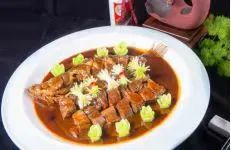 鳜鱼羊肉,是靖江一代名厨刑天锡先生六十年代首烹创制,传承至今。此菜与徐州“羊方藏肉”(将鲫鱼放入割开的大块羊肉之中同烹)有异曲同工之妙。古人认为羊和鱼是天下最鲜的食物,两者同烹全成一体,其味自然鲜美无比,并认为“鲜”字就是此寓意。自古,吃羊肉是身份的象征,诗云:“平江九百一斤羊,俸薄如何敢买尝。只把鱼虾充两膳,肚皮今作小鱼塘”。以羊肉待客,是靖江百姓最为贵重的宴客之道。