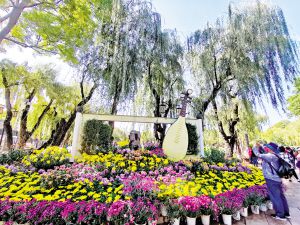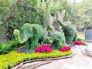 今年菊花展景观主要设在昆明动物园主游路沿线的重要节点处。其中,“金秋乐章”位于公园正大门中心广场,游客尚未入园,就可以看到一组熊猫造型的菊花艺术作品;“火舞献瑞”位于公园主入口中心花坛,5只轻盈婀娜的火烈鸟踏浪而来、自由嬉戏,给游客带来轻快愉悦的好心情;位于公园圆通花潮入口处,由菊花绑扎而成的亚洲象造型,组合成一个亚洲象家庭,正款款迎客。