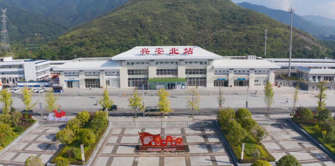 兴安北站位于桂林市兴安县西山村,2014年4月26日正式投入使用,日均开行动车37趟。