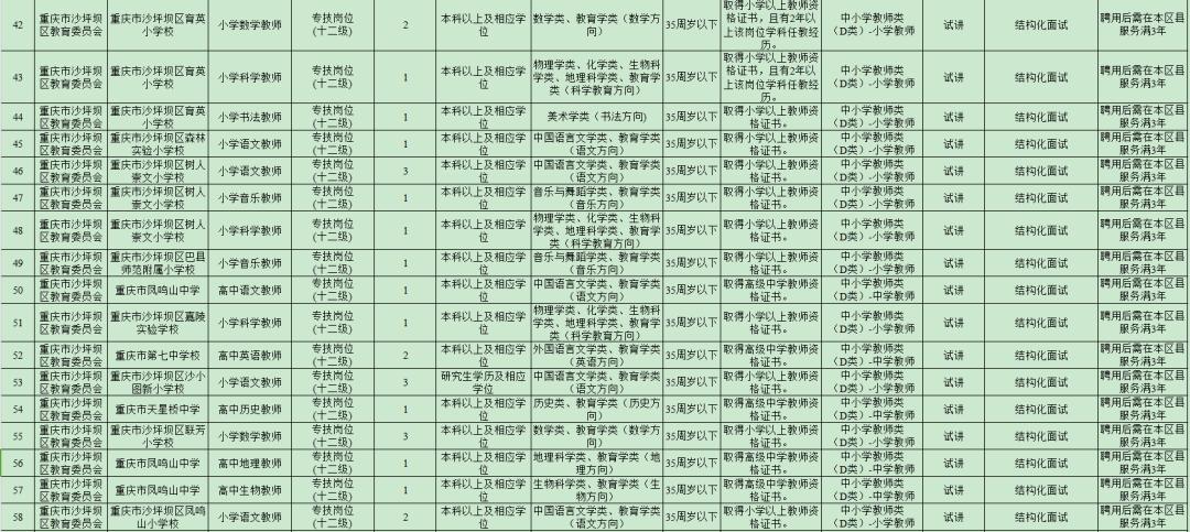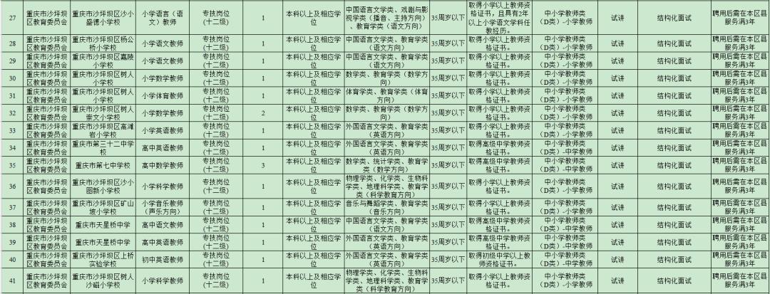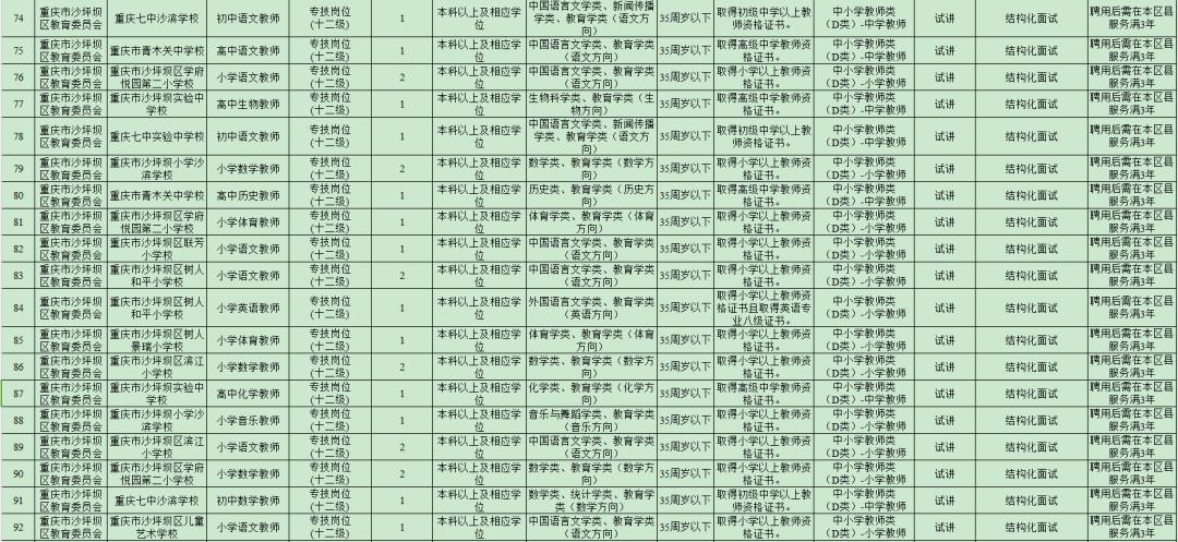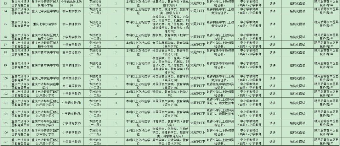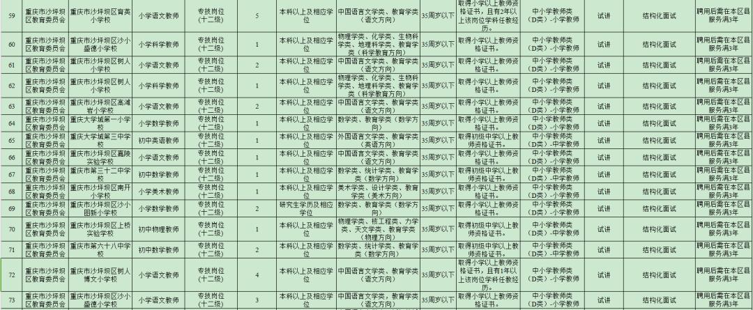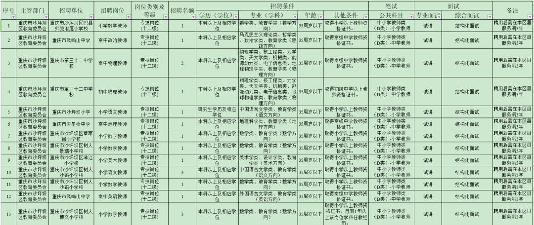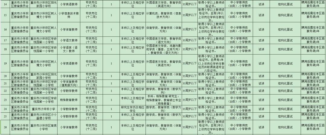 重庆市沙坪坝区教育事业单位2023年下半年公开招聘工作人员岗位一览表