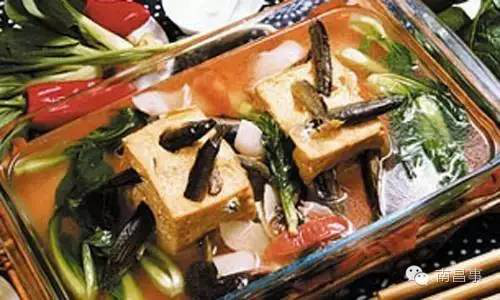 73、鳅鱼钻豆腐:又称泥鳅钻豆腐,是一道来自民间的汉族风味名菜,具有浓郁的乡土气息,在许多地方都有制作。豆腐鳅鱼交错,味鲜可口,令人垂涎。
