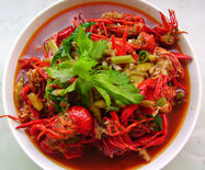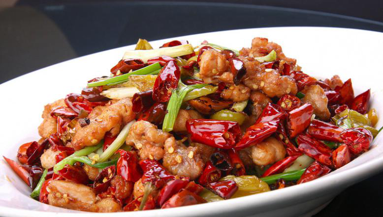 12、重庆辣子鸡:辣子鸡,是川东一道著名的江湖风味菜,流行于歌乐山一带。一般以鸡为主料,加上葱、干辣椒、花椒、盐、胡椒、味精等多种材料精制而成,营养丰富,味道鲜美,虽然是同一道菜,各地制作也各有特色,如,重庆歌乐山辣子鸡、超级辣子鸡、辣子鸡块、黔味菜肴辣子鸡、川味辣子鸡丁、辣子鸡丁等。