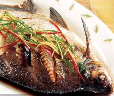 69、清蒸武昌鱼:清蒸武昌鱼通常选用鲜活的武昌鱼为主料,配以冬菇、冬笋,并用鸡清汤调味而成。成菜特点是:口感滑嫩,清香鲜美。