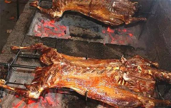 16、烤全羊:烤全羊是蒙古族人民膳食的一种传统地方风味肉制品,一道最富有民族特色的大菜,是千百年来游牧生活中形成的传统佳肴,也是蒙古族招待贵宾的传统名肴。