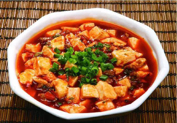 61、麻婆豆腐:陈氏所烹豆腐色泽红亮,牛肉粒酥香,麻、辣、香、酥、嫩、烫、形整,极富川味特色,陈氏豆腐很快便名播遐迩,求食者趋之若鹜,文人骚客常会于此。有好事者观其陈氏脸生麻痕,便戏之为“陈麻婆豆腐”。