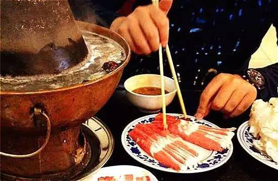 15、涮羊肉:起源于元代。内蒙古涮羊肉多选用大尾绵羊的外脊、后腿、 羊尾等部位,切成薄片,放在火锅沸汤中轻涮;再取备好的麻酱、腐乳、韭菜花、葱花、姜丝、虾油等作佐料,肉片鲜嫩可口,不膻不腻,边涮边吃。