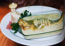 30、得莫利炖活鱼:哈尔滨郊区靠着公路边有一个叫得莫利的小村庄,村里人在路边上开了个小吃店,招待路上歇脚吃饭的过路人。把豆腐、宽粉条子和江里捞上来的鲤鱼炖在一起吃是老乡们吃个热乎的老做法。后来菜的做法不胫而走,传遍了城里的大街小巷。