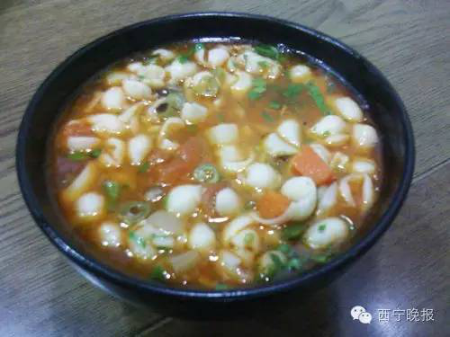 64、麻食,也有叫“麻什”、“麻食子”或者“麻什子”的,是一道传统小吃。明代美食家黄正一在《事物组珠》一书中说:“秃秃麻食是面作小卷饼,煮熟入炒肉汁食。”