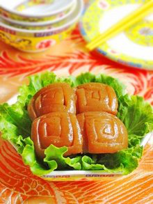 80、黄鱼鲞烤猪肉:鲜黄鱼剖肚盐渍晒干后,称为黄鱼鲞。经过精细加工的舟山黄鱼鲞,洁白、形圆、味鲜、咸淡适口,含有丰富的蛋白质和适量的脂肪。黄鱼鲞加生姜清炖,可供妇女产后补虚。
