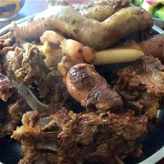 14、手扒肉:它是蒙古人传统的食品之一,也是日常生活中肉食的主要吃法。做法是将肥嫩的绵羊用传统的方式宰杀,剥皮去内脏,去头去蹄,洗净,卸成若干块,放入白水中清煮,待水滚肉熟即取出,置于大盘中上桌,大家手拿蒙古刀大块大块地割着吃。因不用筷子,用手抓食而得此名。