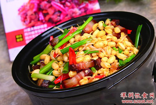 24、芽豆藏香猪:主料包括藏香猪250克、黄豆芽350克;调辅料包括盐、鸡精、小米辣15克、美极鲜味汁8克、辣鲜露8克、鸡精2克、小葱节30克、色拉油。