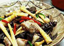 81、竹笋炖排骨:不仅菜好吃,而且汤鲜美。这道菜的原料必须是马蹄笋,不能用毛竹、淡竹、麻竹等其他竹笋。