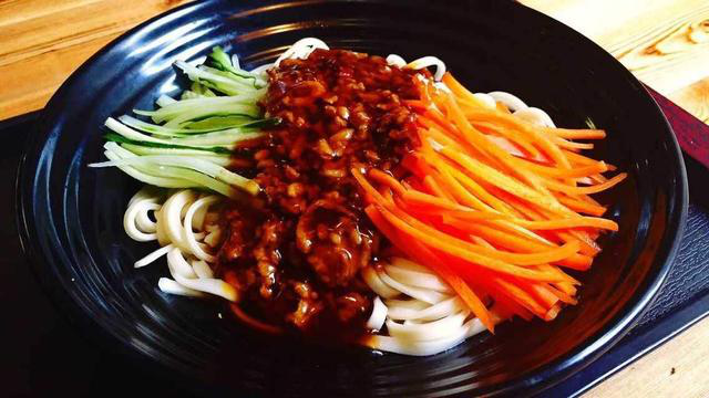 3、老北京炸酱面:一道传统的中式面食,由菜码、炸酱拌面条而成,流行于北京 、河北,天津等地。
