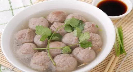 86、潮汕牛肉丸:牛肉丸,使用当天活牛,取整块鲜肉用砍刀背或铁箸大力且反复砸至泥状,附加20余种调味料。味道鲜美、口感滑爽、筋道且极富弹性,既可涮食又可炒制入菜。是广东人打边炉时最爱用的一道食。