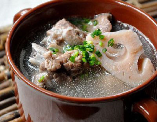 68、排骨藕汤:是由排骨、藕等主要食材做成的一道菜品亦是一道汉族名肴,属于湖北菜。既有藕的清甜又有排骨的香浓,是温润美味汤的佳品。此菜鲜香味美,营养丰富,开胃益血,有补气补钙的功效。