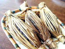 89、稻草排骨:贵州人喜欢吃腊味,每逢举子赴京赶考,必备腊排骨的数串,排骨皆为小节,寓意"节节高升"。有次有举子投宿客栈,店家阴差阳错,错将稻草与排骨合蒸,不料稻香入骨,滋味独特,举子食之思路打开,一路照此食用。京城殿试,金榜题名,举子欣喜之余将功劳归于这稻草排骨。时至今日,该地学子每逢考学,据说都要吃稻香骨,以期节节高升。