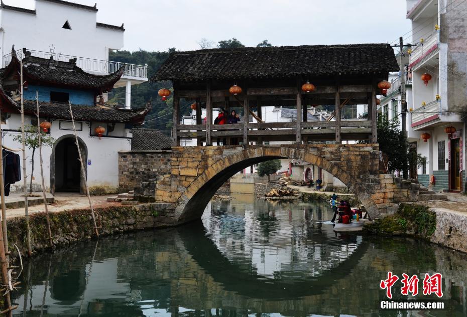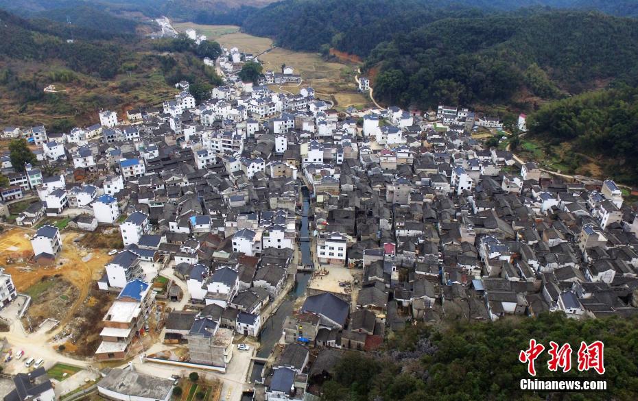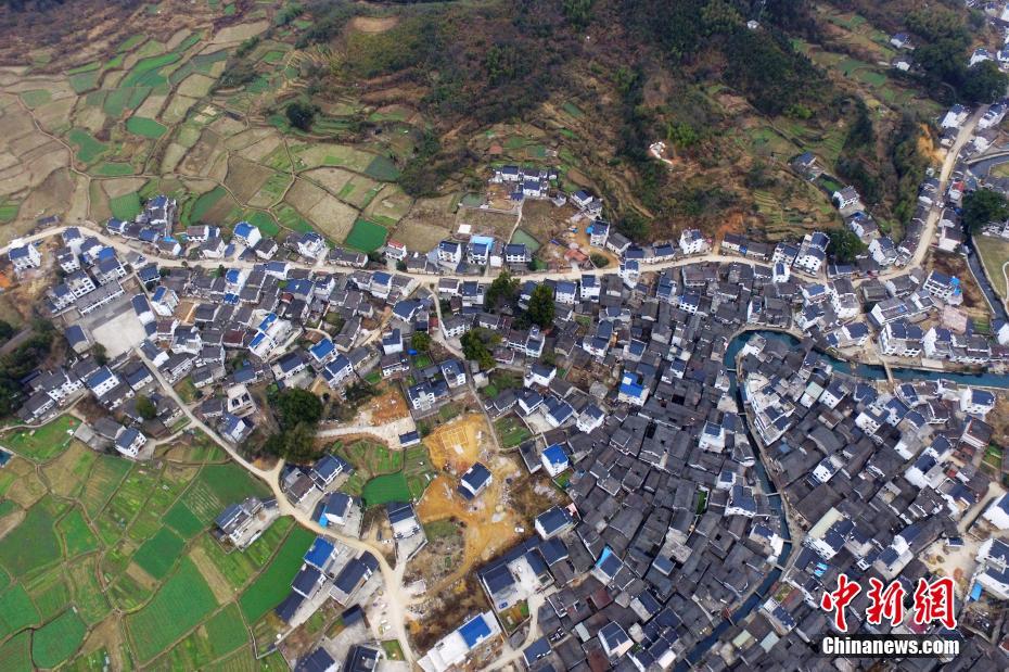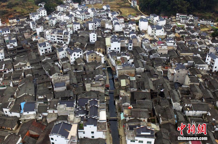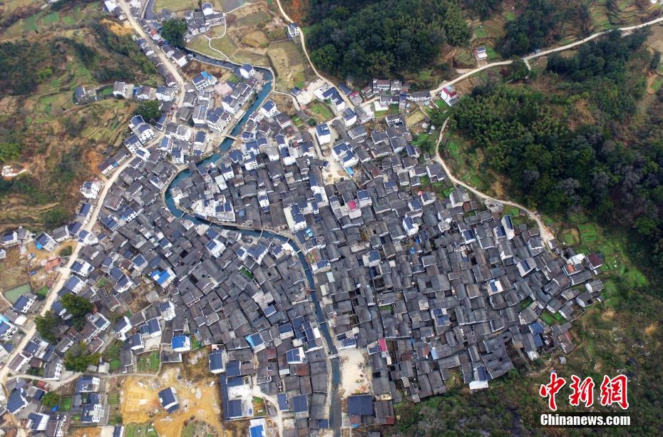 1月14日,航拍“中国最美乡村”江西省婺源县镇头镇“千烟之村”游山村,游山村位于婺源县西部,是婺源县最大的自然村。游山村最早建于唐朝天宝年间,历史上有“千烟之村”的美誉,是江西省历史文化名村。村庄现存明清民宅500多幢,一条呈太极图形S的碧绿小溪穿村而过,民宅夹浚溪而建。600多米长的溪岸俨然是一条繁华的河街,店铺鳞次栉比。小溪两岸由古桥相连,简朴幽雅,可谓“小桥流水人家”。文/刘占昆 图/程新德