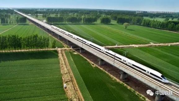 中铁二十局集团主申报并施工总承包,铁四院勘察设计,中铁二十局集团一公司、三公司、五公司参建,铁一院监理的新建郑州至徐州铁路客运专线民权特大桥,位于河南省民权县境内,全长33.67公里,设计时速350公里。在这座大桥上,我国两列标准动车组完成时速420公里的高速交会试验,刷新实际铁路运营线最快交会世界速度。该桥是我国首个采用自主研发的CRTSⅢ型先张板式无砟轨道应用的试点工程,并采用双向先张预应力轨道板,先后获铁路工程设计一等奖、中国土木工程詹天佑奖、国家水土保持生态文明工程等荣誉。