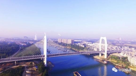 中铁十七局集团主申报并施工总承包,中铁十七局集团四公司参建的广西贵港市青云大桥,是贵港市连接郁江南北两岸交通的重要工程,全长1280米,主桥长548米,主跨长280米,桥宽36.5米,设计为双向6车道。主桥共对称设有136根斜拉索,主塔采用“鱼”状流线弧形结构外形,为亚洲第一座双塔双索面预应力混凝土边主梁斜拉桥。